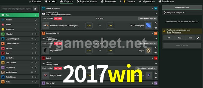 A aposta 2017win oferece aos jogadores a experiência mais conveniente de apostas em eSports!